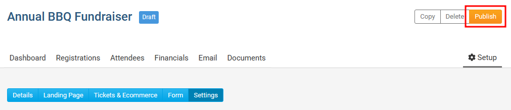 Near the top right, can you click Publish to make the event go live. To view the event on the website, click View.