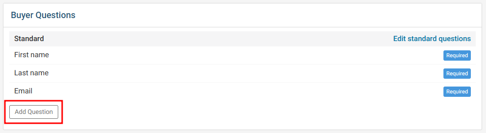 Buyer Questions - Questions that will be asked of the individual placing the event registration order.