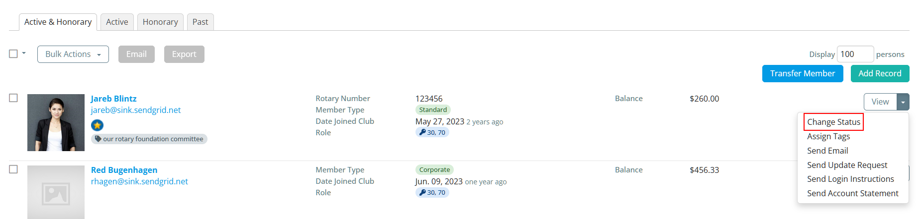 If you would like to mark the duplicate profile and deactivate it, please determine which profile is most complete and has the most correct data about the member. You can do this by asking the member which login name they use to log in to the club, checking the Attendance data, the volunteer data and which profile contains the most profile information for the member.